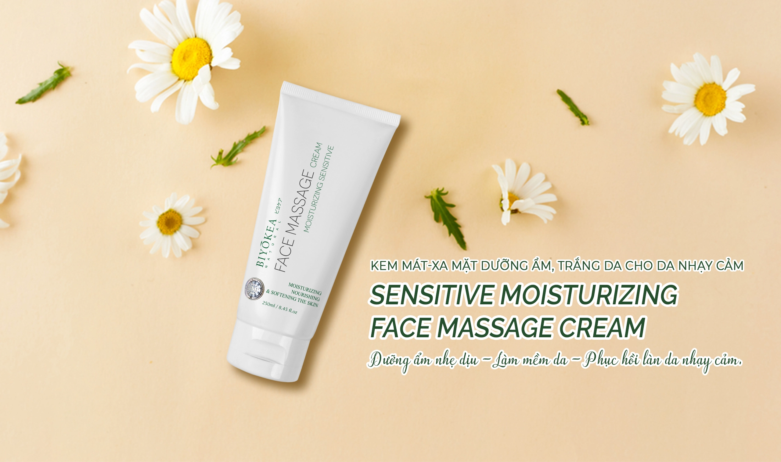 Kem mát-xa mặt dưỡng ẩm, trắng da cho da nhạy cảm của BIYÒKEA được thiết kế đặc biệt dành cho làn da dễ kích ứng, mỏng yếu hoặc đang trong giai đoạn phục hồi.